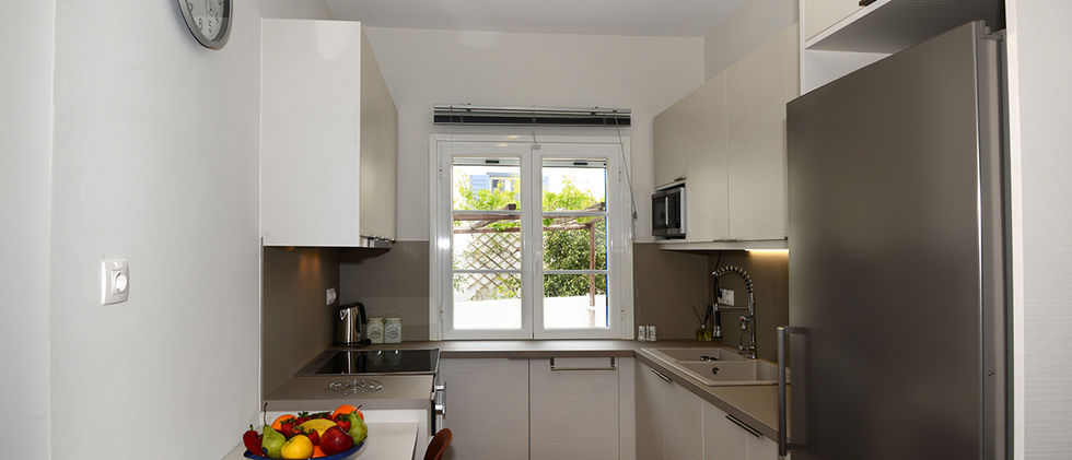 DECK1, is a 60m2 apartment with a private balcony overlooking the sea and the bay of Achladi. Features a fully equipped kitchen, bathroom, bedroom and living room with 2 sofas. The mattresses, as well as the different types of pillows, of all the beds (including the sofa bed), are special orders from Grecostrom, our guarantee for a calm and restful sleep! Achladi beach is only 100m away and Vari beach is 400m away.
